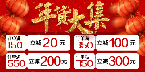 大额满减:满150元立减20元;满350元立减100元;满550元立减200元;满750元立减300元。一年一次,错过再等一年!